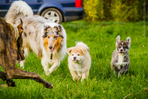 Die Kleinen sind wirklich sehr putzig und Gaia war wirklich sehr zart mit ihnen... meistens zumindest 😀 Sie hatte schon ein bis zwei mal versucht etwas "grober" zu spielen, aber da haben die kleinen Babys tatsächlich sehr cool reagiert und Gaia einfach mal angepflaumt, dass das so nicht geht *lach* So selbstbewusste Welpen habe ich selten erlebt - aber war natürlich für Gaia auch eine coole Sache, dass sie gemerkt hat "so geht es nicht". So war sie dann mit den kleinen sanfter und hat mit den Großen dann etwas wilder gespielt 😀
